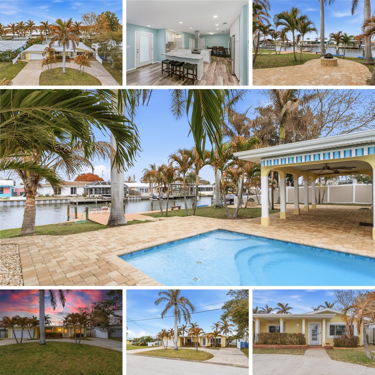 This Waterfront Coastal delivers the ultimate Cocoa Beach lifestyle -- deep-water access, designer upgrades, and effortless indoor-outdoor living just six homes from open river. This beautifully updated 3-bedroom, 3-bath residence features impact windows and doors, a circular drive, and a thoughtful split layout designed for both relaxation and entertaining. The redesigned kitchen showcases a large island, custom soft-close cabinetry with pull-outs, stainless appliances, and a walk-in pantry, flowing seamlessly into spacious living areas and a riverside family room with smart shade system. The primary suite offers water views, custom accent wall with built-ins, and an updated spa-style bath. Major improvements include newer HVAC and ductwork (2021), roof systems (2019), luxury wood-look flooring, LED lighting, and modernized mechanicals. Outdoors, enjoy a resort-style saltwater pool with Pentair automation, outdoor full bath, covered lanai with audio, paver patios, firepit, and lush tropical landscaping. The private dock features water, electric, two jet-ski lifts, and deep-water boating access. Smart soffit lighting, poolside speakers, and multiple entertainment spaces complete this exceptional waterfront retreat -- all just moments from coffee shops, restaurants, nightlife, and the beach.